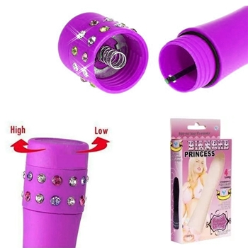 - Elegante estimulador vibrador em formato de bastão com detalhes de pedras que imitam pequeninos diamantes em sua base.