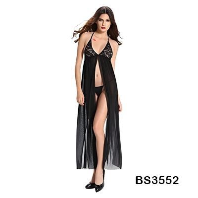 - Bodystocking macacão ou vestido rendado, com detalhes vazados tipo arrastão, leve transparência e decote profundo.